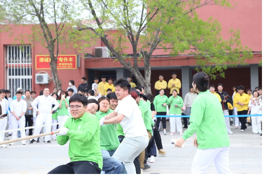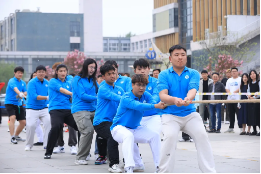 作为开幕首场竞技,由机电工程学院承办的“凝心聚力 ‘绳’彩飞扬”趣味拔河比赛点燃全场激情。各二级学院组成的7支队伍展开激烈角逐,选手们紧握长绳、重心后倾,呐喊声震耳欲聋,长绳中点的红绸在界线上来回拉锯。最终,信息工程学院获得一等奖,机电工程学院获得二等奖,工商管理学院、人工智能学院获得三等奖,环境与化工学院、经济管理学院、工程管理学院获得优胜奖。